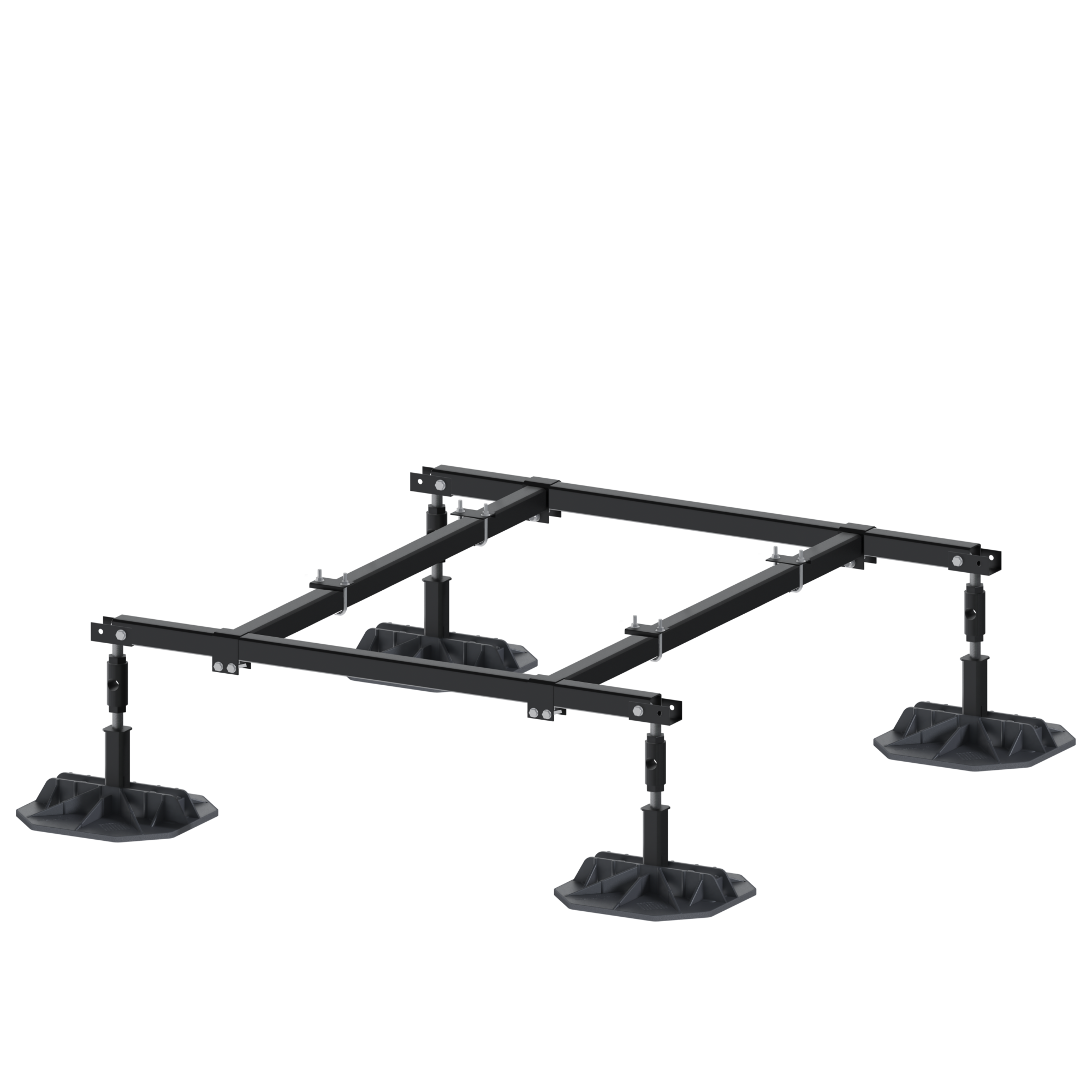 EcoFrame-XL 60" is a lineup of pre-engineered non-penetrative equipment stands designed to support VRF/VRV equipment on flat roof surfaces. The modular design connects lengthwise to support multiple configurations. Each leg is height adjustable. Steel is rust protective and powder coated. Available in 4', 5', 6' sections, with 5' cross bars. EcoFrame-XL 60" is commonly used to support VRF/VRV equipment in high wind environments. Either individually, or in rows.