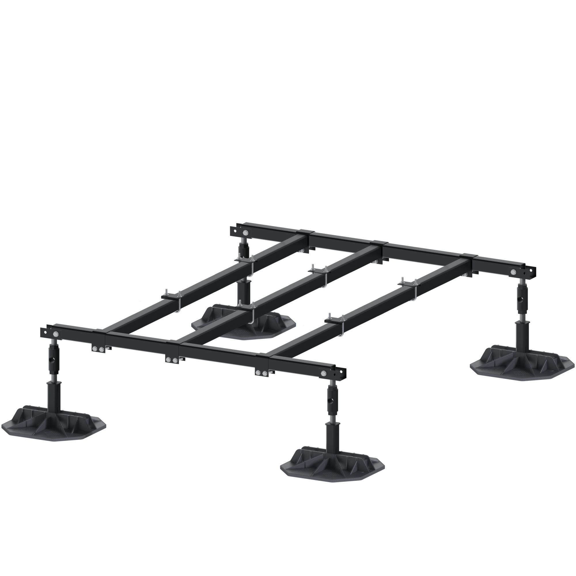 EcoFrame-XL 60" is a lineup of pre-engineered non-penetrative equipment stands designed to support VRF/VRV equipment on flat roof surfaces. The modular design connects lengthwise to support multiple configurations. Each leg is height adjustable. Steel is rust protective and powder coated. Available in 4', 5', 6' sections, with 5' cross bars. EcoFrame-XL 60" is commonly used to support VRF/VRV equipment in high wind environments. Either individually, or in rows.