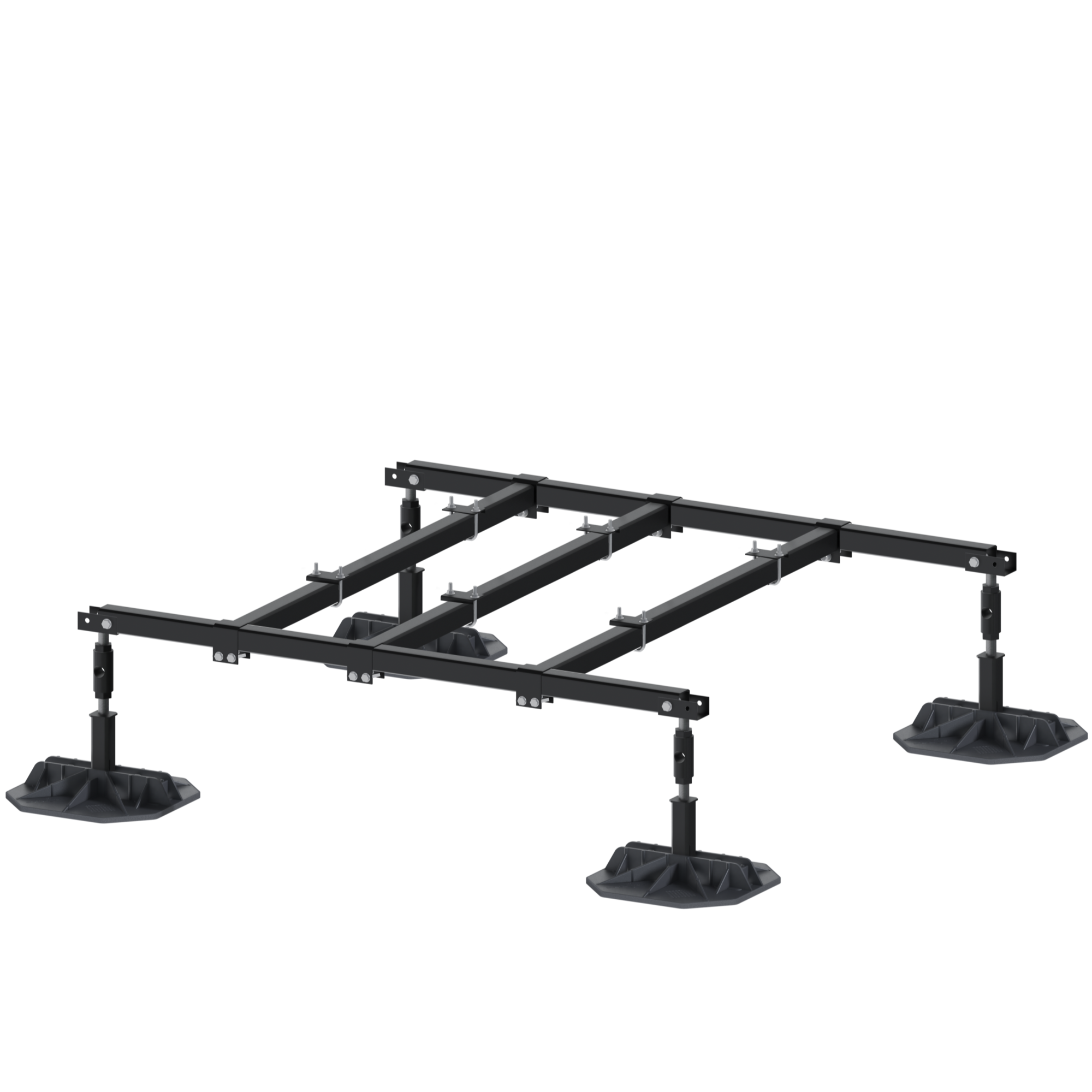 EcoFrame-XL 60" is a lineup of pre-engineered non-penetrative equipment stands designed to support VRF/VRV equipment on flat roof surfaces. The modular design connects lengthwise to support multiple configurations. Each leg is height adjustable. Steel is rust protective and powder coated. Available in 4', 5', 6' sections, with 5' cross bars. EcoFrame-XL 60" is commonly used to support VRF/VRV equipment in high wind environments. Either individually, or in rows.