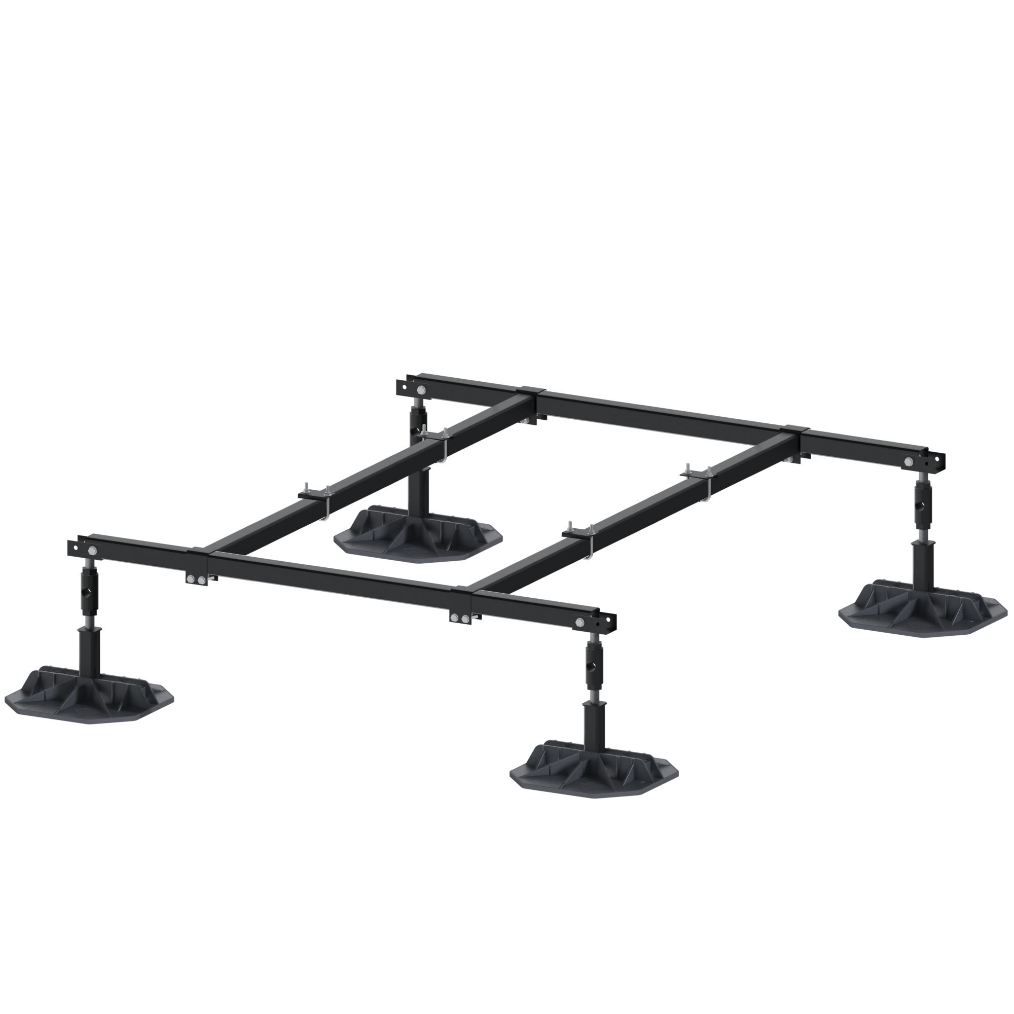 EcoFrame-XL 72" is a lineup of pre-engineered non-penetrative equipment stands designed to support rooftop equipment on a flat surfaces. The modular design connects lengthwise to support multiple configurations. Each leg is height adjustable. Steel is rust protective and powder coated. Available in 4', 5', 6' sections, with 6' cross bars. EcoFrame-XL72" is commonly used to support VRF/VRV equipment and side discharged Air Handling Units. Either individually, or in rows.